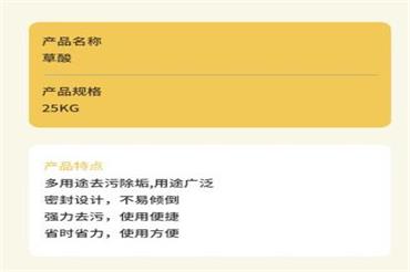 合肥优质工业草酸供应销售-草酸批发-合肥麦子推荐商家草酸液相法反响压力为13.0-15.0MPa。乙二醇氧化法以乙二醇为原料,在硝酸和硫酸存在下,用空气氧化而得。氧化法 氧化过程分两步停止。的分辨方法,草酸批发厂家,草酸自身可制成为白色粉末,加水溶解后成水溶液,草酸,即